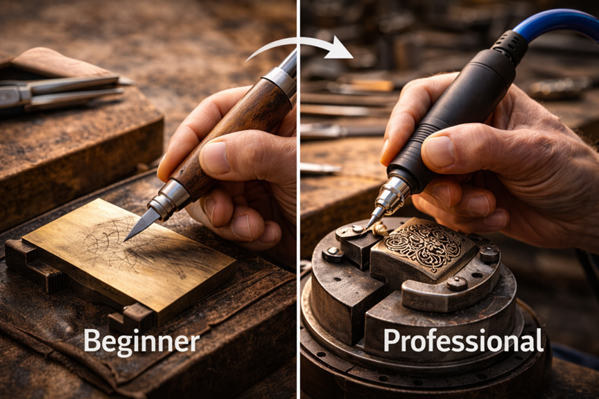 Every engraver remembers the early days. The hands were unsteady, the lines uneven, and the metal seemed to resist every movement. Progress felt slow, and mistakes happened often. Many beginners believed this struggle was a necessary part of learning—and to some extent, it was. But what most don’t realize is how much the choice of tools shapes that learning experience.